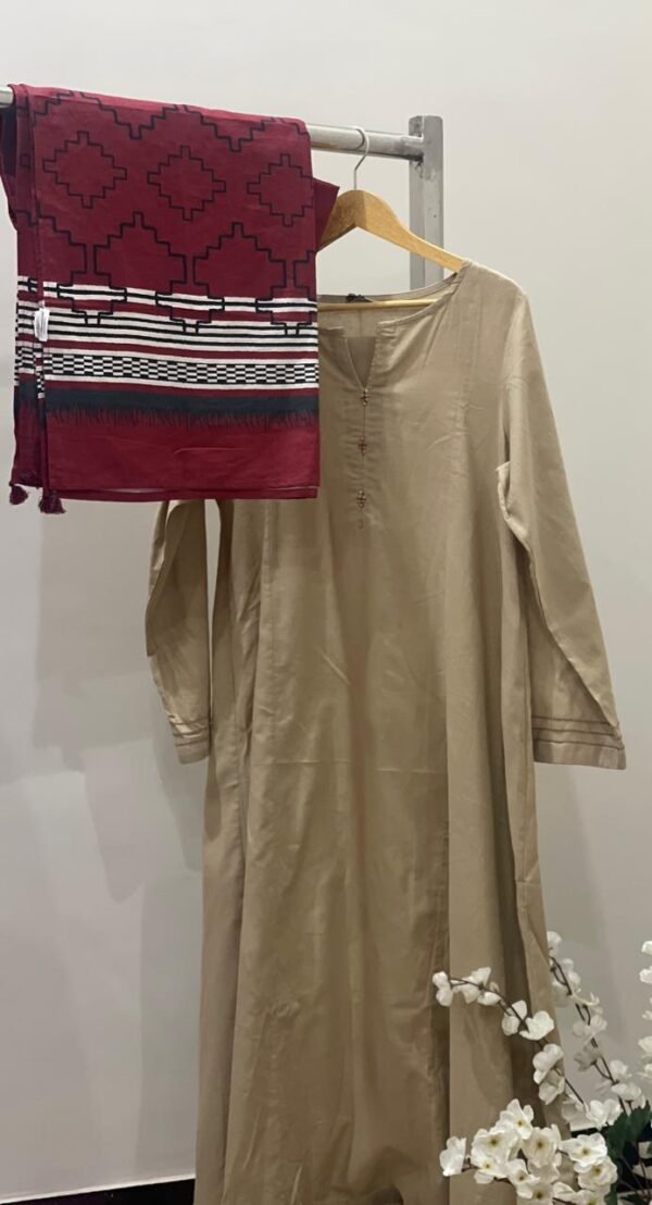 You are here: Home » 2 Piece » Beige A-line Khadar Shirt